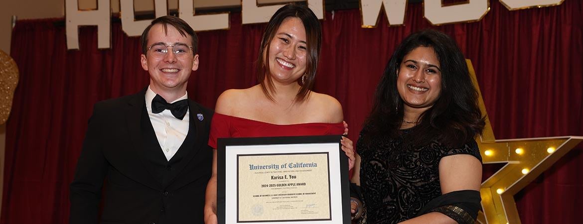 Header image: Karisa You, lecturer in management at the UCR School of Business, celebrates winning the 2025 Golden Apple Award for Excellence in Teaching Graduate Elective courses.
