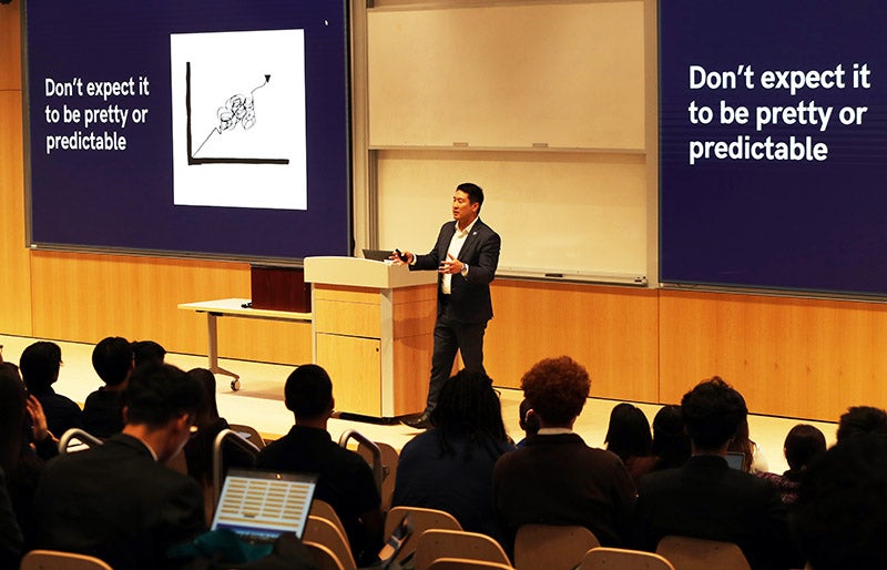 In response to Chung’s address, Pranaya Naidu ’27 said: “The biggest thing I took away is to always be persistent.”